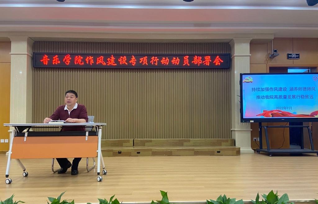 9月28日下午,音乐学院党委组织全体教职工在积学楼大学生艺术教育中心,召开作风建设专项行动动员部署会。音乐学院党委书记仵录让主持会议。