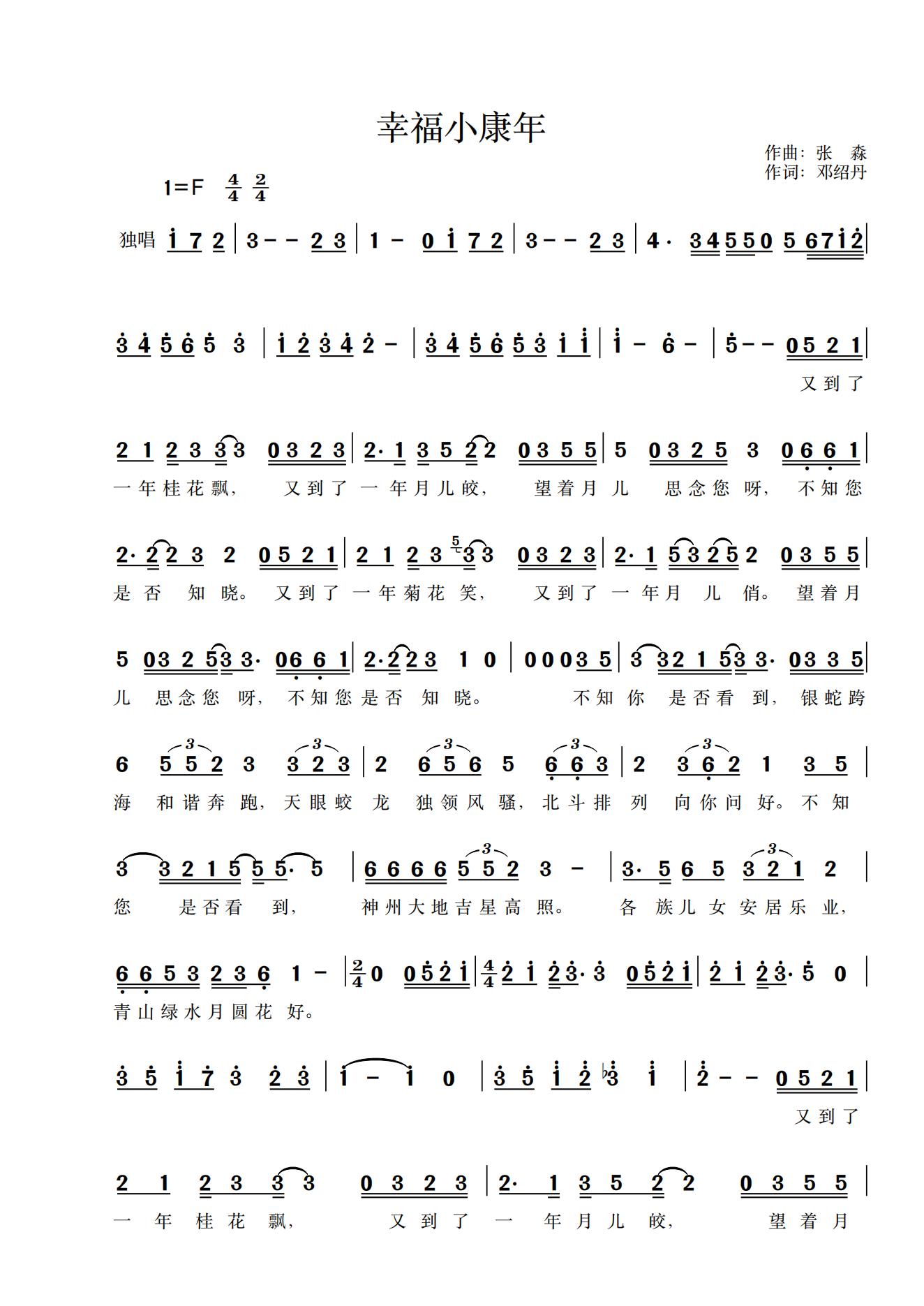 《幸福小康年》歌词凝练简约、紧贴时代脉搏、温馨隽永祥和,表达了在党的领导下对国家未来发展的坚定信心和对更加美好幸福生活的憧憬。作品曲调旋律传统而特色鲜明,民族气息浓郁且曲调优美,欢快喜庆,音区跨度小,节奏朗朗上口简单易学,是一首适合学唱的大众歌曲,希望大家积极欣赏、学唱及分享,以昂扬向上的精神面貌喜迎党的二十大胜利召开!