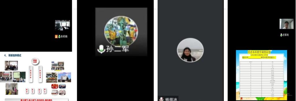 为进一步推进省级一流本科专业建设,7月21日上午,外国语学院举行了英语省级一流专业建设点建设中期检查专家评估会。应邀参加此次评估会的专家有西安外国语大学教师教育学院院长孙二军教授、宝鸡文理学院外国语学院院长李伟教授,全国优秀教师、陕西省教指委基础英语教育专委会委员、陕西省教学名师、西安市第26中学正高级教师杨筱冰老师,陕西省教指委基础英语教育专委会委员、宝鸡市教研室教研员、正高级教师任军利老师。beat365国际交流与合作处秋杰处长、外国语学院班子成员、教授、系部主任及教师代表参加了会议。此次会议采用线上线下结合的方式进行,会议由外国语学院院长主持。