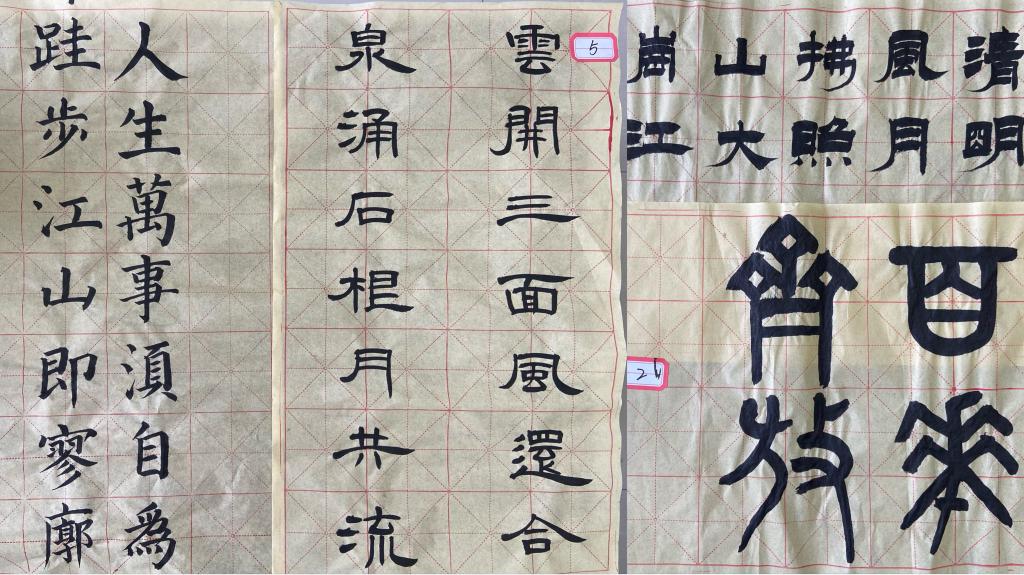 “时代各不相同,青春一脉相承”,同学们通过激扬的文字表现了自己的爱国情怀,践行了社会主义核心价值观,只有吾辈当自强,才能做到五四精神的薪火生生不息,愈烧愈烈。“人生万事须自为,跬步江山即寥廓”用笔书写豪情,彰显当代青年的担当与责任,在学思践悟中坚定理想信念,追求进步、勇做模范。“清风拂山岗,明月照大江”,面对困境,当代大学生像大江一样波澜不惊,心止如水,处事不惊。一幅幅行云流水、落笔如云烟的作品,抒发出同学们对共青团百年华诞的敬仰,对中国文化的热爱,以墨香抒发心中慷慨,展现时代风华,坚定理想信念。最终,通过评委评审,有15位同学荣获优秀奖,有6位选手荣获三等奖,6位选手荣获二等奖,教育科学学院郭纤纤同学包揽三个赛道的一等奖。