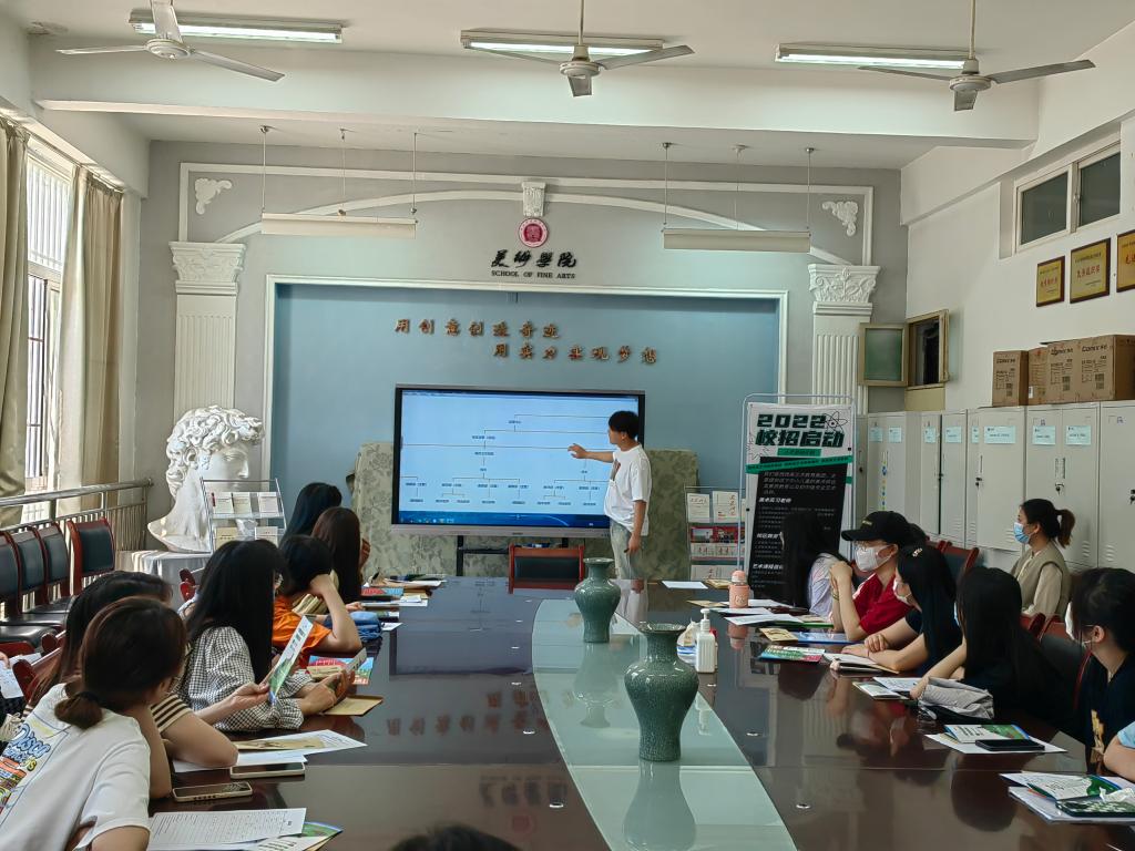 美术学院于5月6日上午在启真楼美术学院会议室举办2022年春季第四场美术类专场招聘会暨第二场书记校长访企拓岗就业专项行动。招聘会邀请西安中育品格幼教集团、西安乐心艺术培训学校、西安复盛公商贸有限公司、西安文房斋文化有限公司、番茄田艺术培训机构五家单位参加。