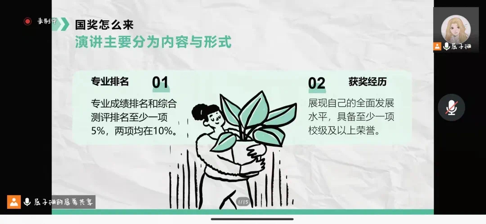 2022年4月20日和4月28日,生命科学与食品工程学院在线上分别举办了两场国奖零距离宣讲会,由2018级国奖获得者屈子珊主讲,2021级学生参加。