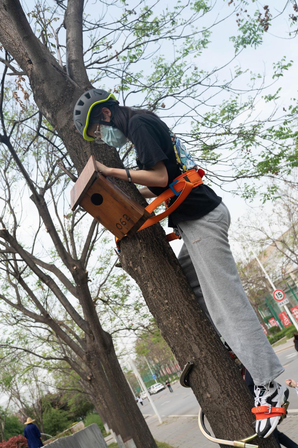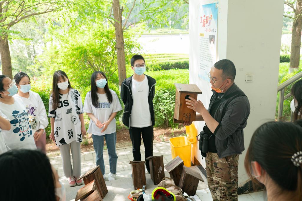 在活动中,学生们首先了解了校园常见鸟类的形态特征和分布规律,以及人工鸟巢箱的类型、结构和功能。接着在唐施翼老师的示范和指导下,大家很快掌握了人工鸟巢箱挂置的选址和操作要领,最终成功将20多个野生鸟类繁殖巢箱分别挂置在beat365行政楼和教学楼旁鸟儿活动最频繁区域。