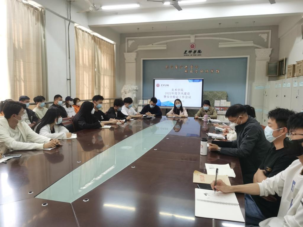 4月6日下午,美术学院在美术学院会议室召开2022年度安全教育及学风建设推进会暨学生干部培训会。学院党委副书记(主持工作)文竹、党委副书记于跃、全体辅导员以及各班班长参加了此次会议。