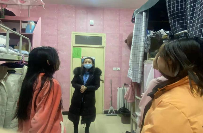2022年1月1日下午,11号公寓楼临时党支部指导教师白建超、临时党支部书记黄薇、各委员与各学院推荐学生干部见面,并在学生陪同下,走访慰问宿舍学生。经初步了解统计,11号公寓楼共有9个院系,在校学生626人,其中学生党员152人。