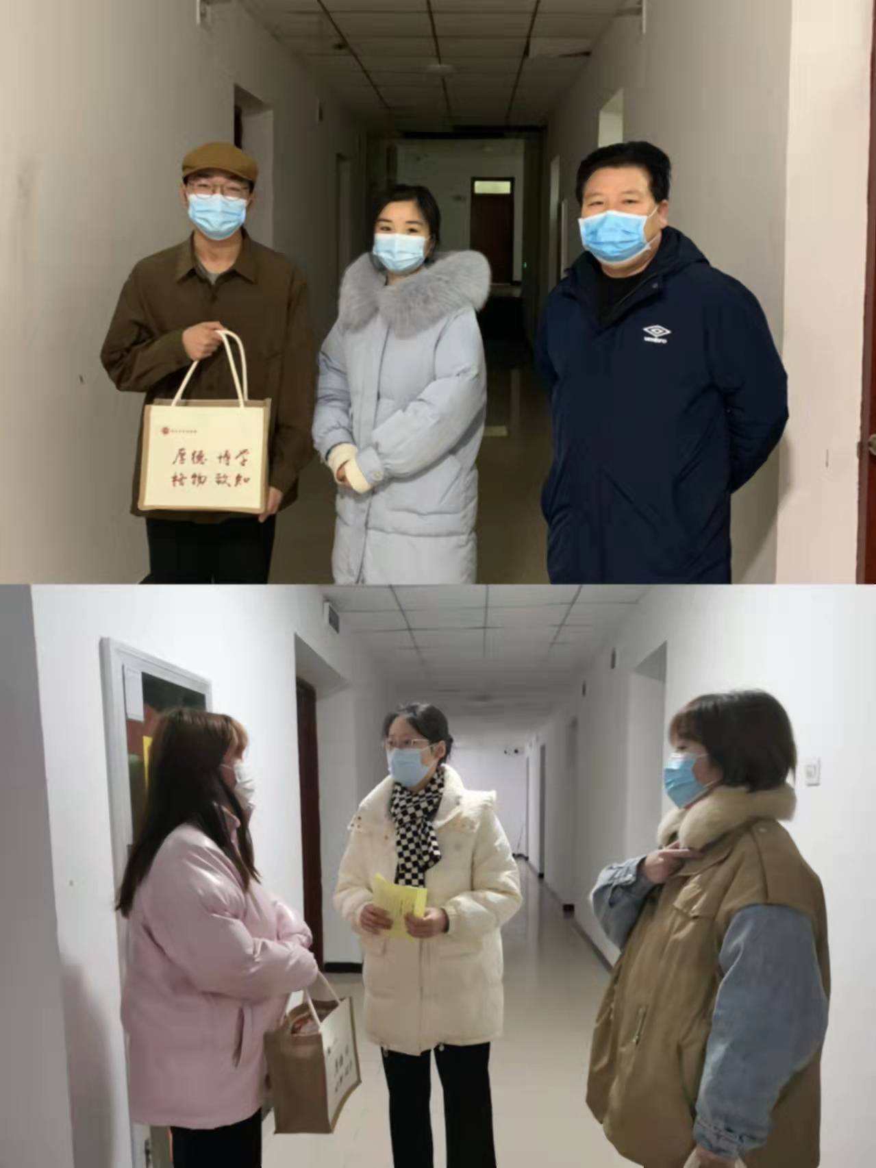 1月9日晚间,学院党委书记张建辉、副书记陈璐、学工办主任艾菁、辅导员肖欢走访慰问我院学生宿舍,并为学生志愿者及家庭经济困难学生发放爱心礼包。张建辉书记表示,希望同学们携手并肩,共同战斗,学院永远是同学们坚强的后盾。