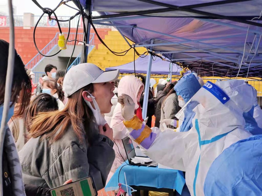12月的西安刚过冬至,寒风料峭。陕师院的同学们在志愿者的指引下,井然有序排队进行核酸检测。关键时刻,闻令而动,闻令必行。核酸检测点,志愿者快速集结上岗,负责人群引导、贴试管标签,来回提醒排队同学提前打开二维码,保持一米线间隔,为小朋友录入身份信息,为老人们展示如何打卡“西安一码通”进行扫码......“不用换班,我可以坚持到最后”,这句话频频出现在志愿者工作群。面对巨大的人流量,手头的工作一遍又一遍重复操作,还要“主动暴露”在人前。四轮核酸检测,雾气模糊了视线,双手冻的麻木,口罩浸湿无数,他们都坚持了下来。