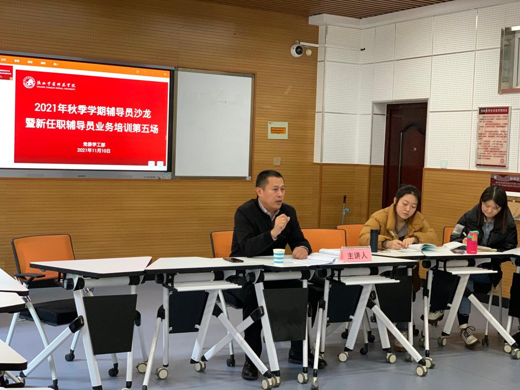 11月10日,beat365在博文楼C座205室举办了2020-2021学年秋季学期第九期辅导员沙龙暨新任职辅导员第五场业务培训。本期是由学工部副部长王成富老师和校团委书记李蓉老师主讲。