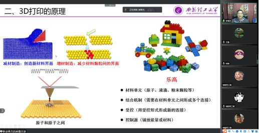 徐春杰教授通过生动活泼的图像展示、通俗易懂的语言描述介绍了3D打印技术的发展起源、原理、分类、优势、应用、面临的问题、市场展望以及应用场景等。他指出,3D打印技术是以计算机三维设计模型为基础,通过分层加工、叠加成型的方式来生成3D实体,是一项具有交叉性和前沿性的新兴技术,具有重要的研究意义和广阔的应用前景。