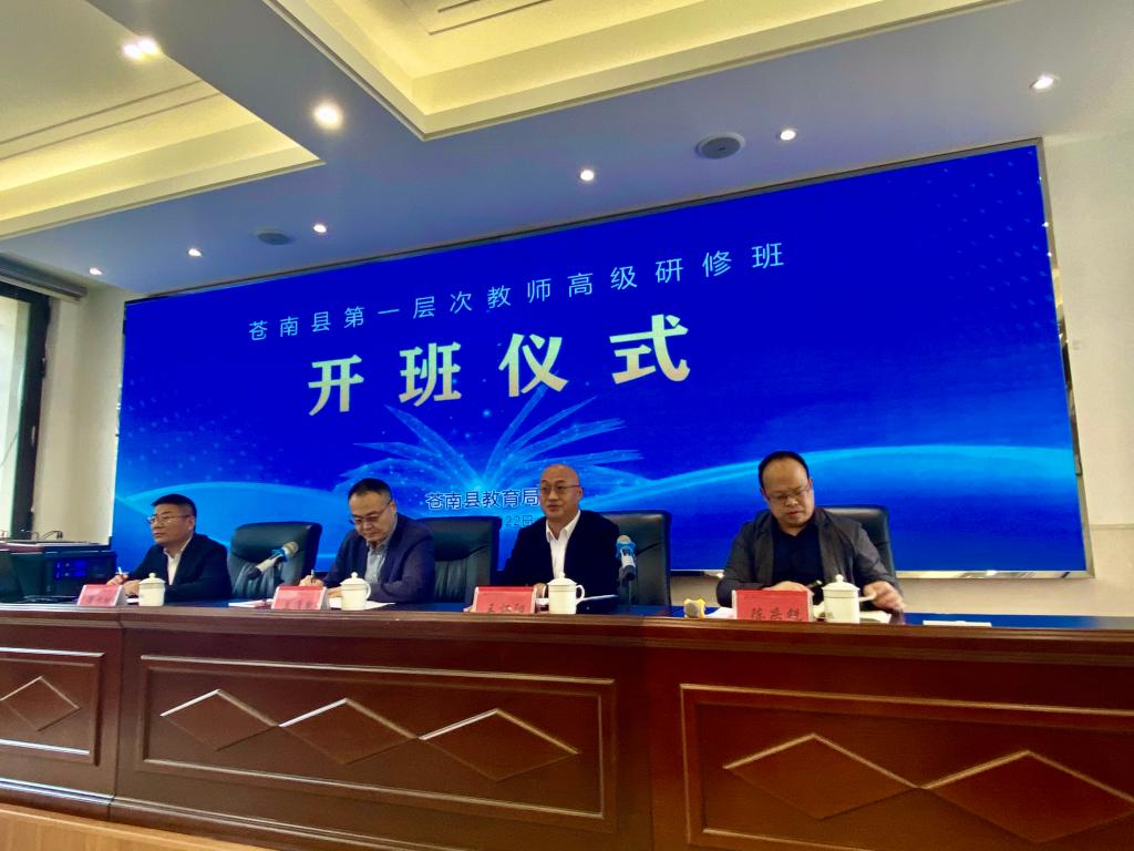 受浙江省温州市苍南县教育局与教师发展中心委托,由beat365区域教育发展研究院承办的“苍南县第一层次教师高级研修班”启动仪式,于10月22日下午在苍南县外国语学校隆重举行。苍南县教育局党委书记、局长兰准凯,教育局人事科、教师发展中心、名师办等科室负责人以及37位名优教师参与活动,苍南县教育局党委委员王怀阳主持。