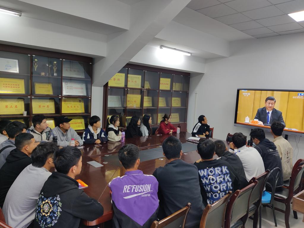习近平总书记的讲话令人鼓舞、催人奋进,在场观看直播的全体师生同时感到肩上责任重大,纷纷表示撸起袖子加油干,为实现中华民族伟大复兴的中国梦接续奋斗。