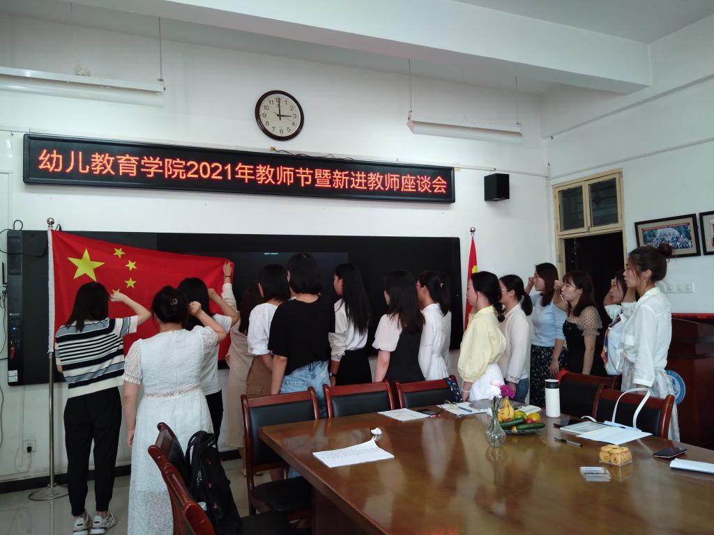 赓续百年初心,担当育人使命。在第37个教师节来临之际,幼儿教育学院于9月8日中午1点,在启真楼307会议室召开教师节暨新进教师座谈会。幼儿教育学院全体处科级干部、各系主任、教工党支部书记、院工会主席、2021年新入职教职工及新转入学院教师参加了座谈会。座谈会由学院副书记苏群主持。