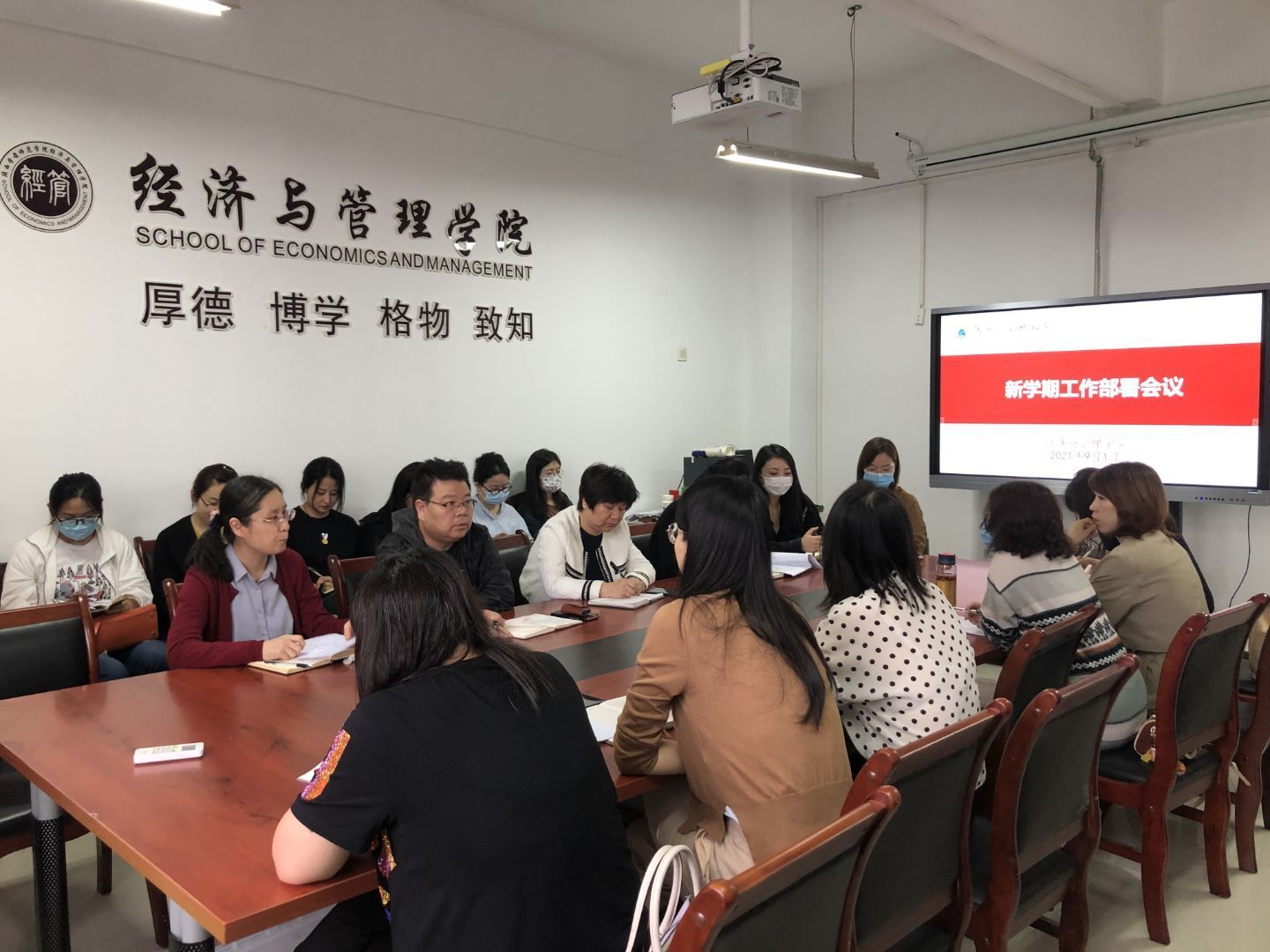 新学期中结合学校工作重点,我院教职工将继续凝心聚力、提质增效、抢抓机遇、初心不忘、使命勇担、立德树人,推进学院各项工作再上新台阶,助力经济与管理学院高质量发展。