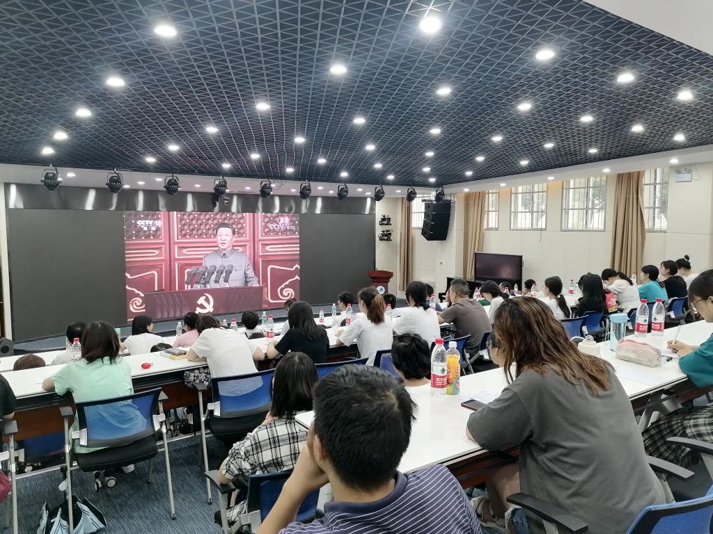 在会场集中观看完大会盛况直播后,教务处、历史文化与旅游学院的党员干部教师和学生代表分别围绕习近平总书记的大会重要讲话精神做了交流发言。大家一致认为,习近平总书记的重要讲话,全面回顾了我党的百年光辉历史,集中彰显了共产党人的本色初心、雄心壮志和使命担当,通篇闪耀着马克思主义真理光芒,是指引我们党推进中国特色社会主义伟大事业和全面推进党的建设新的伟大工程的重要纲领性文献,对开启全面建设社会主义现代化国家的新征程,实现第二个百年奋斗目标具有重大理论意义和现实意义,为实现中华民族伟大复兴的中国梦凝聚起必胜信心和磅礴力量。大家纷纷表示,一定要深入学习贯彻习近平总书记重要讲话精神,更加紧密地团结在以习近平同志为核心的党中央周围,增强“四个意识”、坚定“四个自信”、做到“两个维护”,不忘初心,勇担使命埋头干,攻坚克难向前进,为学校奋力追赶超越实现高质量发展作出新的更大贡献。