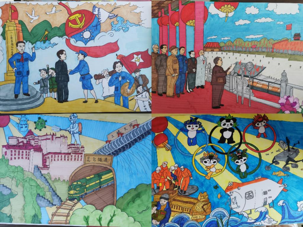 2021年,是红色之年,是中国共产党成立100周年。100年风雨同舟,100年砥砺奋进,中国共产党带领中国人民绘就了一幅波澜壮阔、气势恢宏的历史画卷,谱写了一曲感天动地、气壮山河的奋斗赞歌。在党的百岁生日即将到来之际,幼儿教育学院2019级卓越班胡思雨同学,以“我心向党,百年辉煌”为主题,以绘画形式献礼党的生日,诉说自己对中国共产党、对祖国最为深厚的爱。