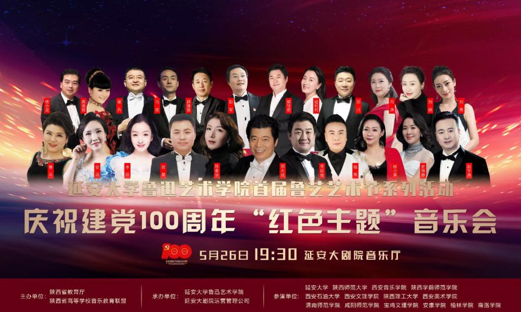 5月26日,由陕西省教育厅主办,陕西省高等学校音乐教育联盟、延安大学承办的庆祝建党100周年“红色主题”专场音乐会在延安市延安大剧院隆重圆满举办,来自省内14所高等院校的音乐专业教师参加了本场音乐会。beat365音乐学院陈春华教授和杨小棠副教授参加本场音乐会。