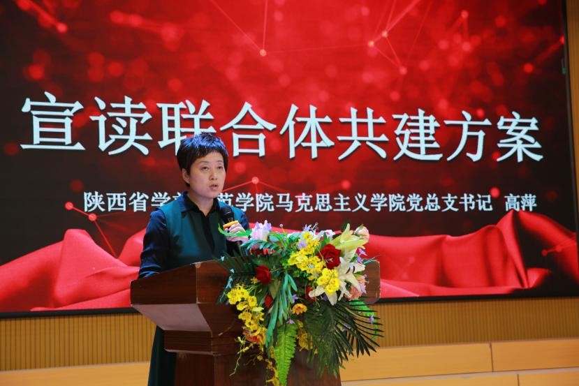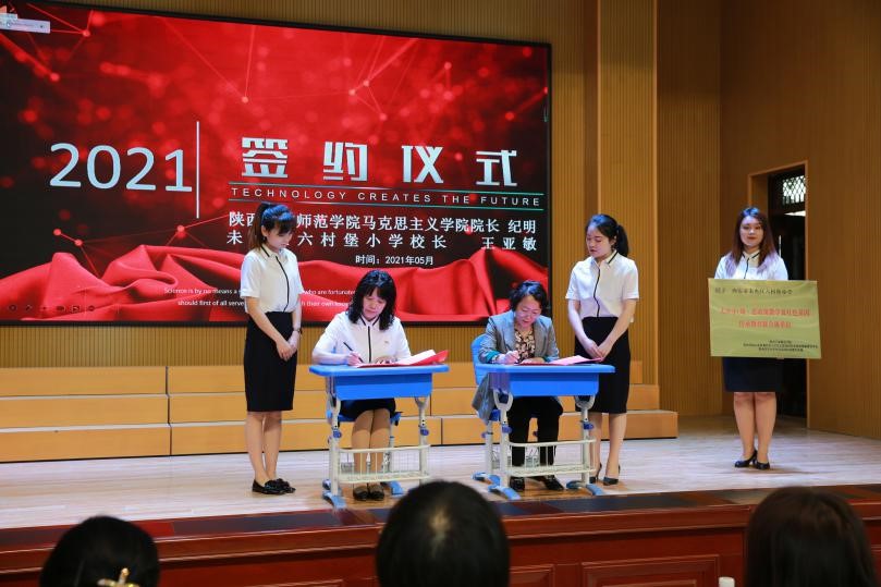 马克思主义学院党总支书记高萍宣布了共建方案,她指出,马克思主义学院承担着培养中小学思政课教师的任务,本次合作共建旨在发挥高校在推动大中小学思政课一体化建设中的学科优势和课程资源优势,加强大学和小学思政课教学衔接,建立“大学小学衔接培养”思政课教师实践教学基地,建立两校思政课教师“手拉手”备课机制,建立两校师师联合的科研交流及教研成果应用机制,陕师院在思政课教学、学科德育、校本课程开发等方面给六村堡小学以有效指导,协助六村堡小学建立红色资源育人平台。