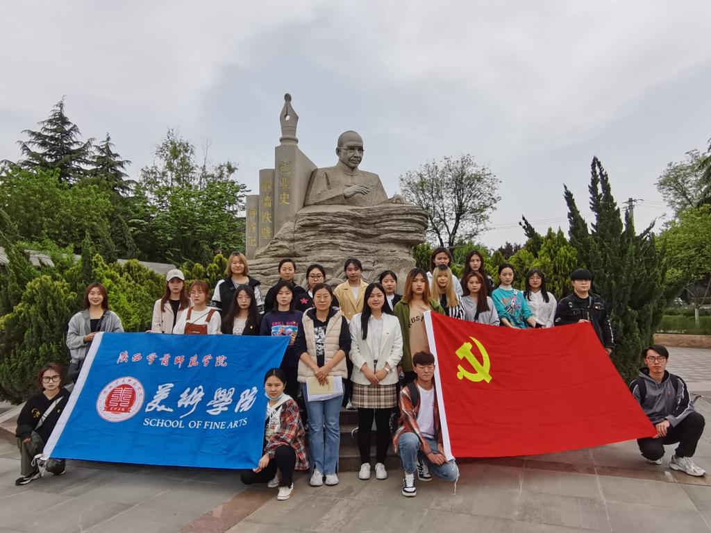 4月16日下午,美术学院学生党支部在柳青文化广场开展了第一期“行走的党课”。学生党员和积极分子参观了柳青文学馆,了解了作家柳青的生平及创作历程,学生党员代表为大家介绍了柳青先生的代表作品《创业史》、《种谷记》、《铜墙铁壁》的内容。大家深刻体会到他“深入生活、扎根人民”的家国情怀。随后,美术学院学生第二党支部书记郭园老师作了题为《学习柳青精神,传承红色基因》的党课。党课讲述了柳青先生的生平事迹和他作为一名共产党员深入生活、扎根人民、无私奉献的精神境界。美术学院学生第一党支部书记蔡艳君老师领学了《论中国共产党历史》中《实现中华民族伟大复兴是中华民族近代以来最伟大的梦想》的内容。最后同学们各抒己见,谈论自己的心得与体会,纷纷表示:“此次党课让我们实地学习了解了柳青先生的生平事迹和经典作品,现场体验感悟柳青精神,我们应该踏实学习,知史爱党,自觉把人生追求同国家和民族的前途命运联系起来,在维护和实现国家与人民利益的过程中创造个人的辉煌人生”。