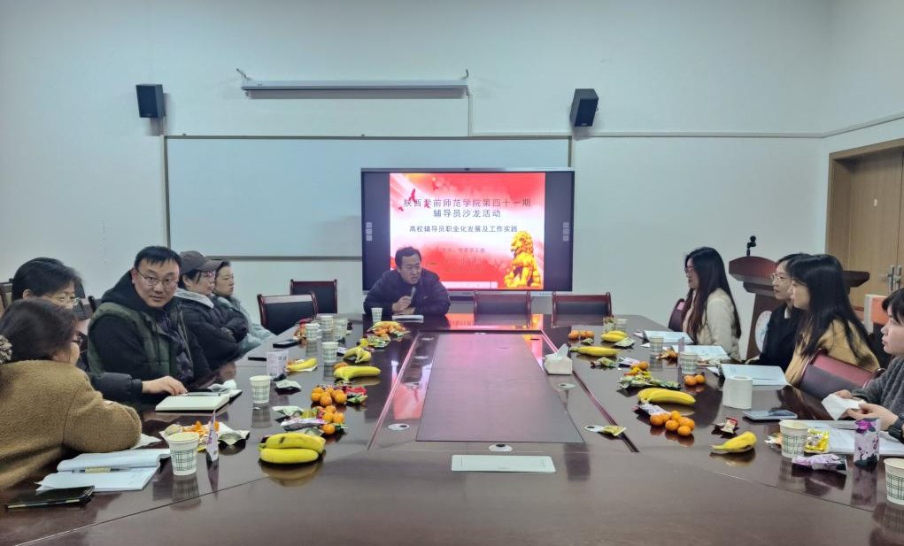 为进一步深入学习贯彻习近平在全国教育大会上的讲话精神,落实立德树人根本任务,推动高校辅导员职业化发展。11月28日下午2:30,由校党委学工部主办、体育学院承办,由体育学院辅导员张振华老师主讲,以“高校辅导员职业化发展及工作实践”为主题的第四十一期辅导员沙龙在综合体能训练中心一楼会议室成功举办。生命科学与食品工程学院、文学院、外国语学院、体育学院党委副书记和辅导员参加本次活动。活动由体育学院党委副书记主持。