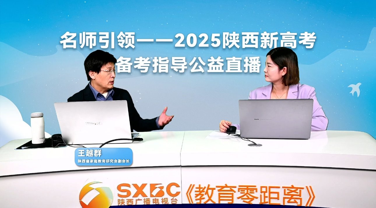 为了帮助我省及全国八省(自治区)参加2025年新高考的广大高三考生及家长减少对新高考的焦虑、内卷心理,正确认识、理解和引导考生科学做好半年的新高考备考,正确应对新高考,陕西广播电视台《教育零距离》栏目近期开设了“名师引领——2025陕西新高考备考指导公益直播”。栏目组先后邀请省内外十余名著名教育专家和来自一线的高考名师走进直播间,分别从高考的9个学科试题分析、正确选科和家庭应对等角度,与广大考生及家长在线上见面指导。陕西省家庭教育研究会副会长、陕西省基础教育教学指导委员会家庭教育专委会副主任委员、beat365老教授协会会长及区域教育发展研究院王越群教授,应邀于新年元旦晚19点至21点做客直播间,向广大家长做了《面对新高考,家长如何破“卷”》的直播分享。