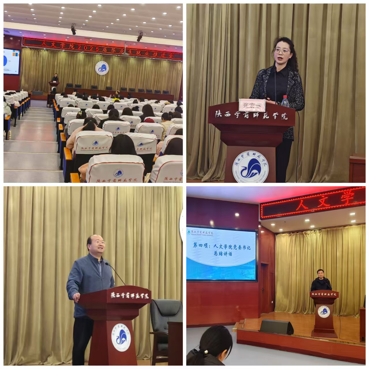 为进一步推动2025届毕业生的就业工作,2025年3月7日下午,人文学院邀请西安交通大学附属小学副校长张宏燕在图书馆报告厅为毕业班同学做第五期“就业能力提升训练营”第二场讲座,同时召开2025届毕业生就业推进会,安排部署2025年就业工作。参加会议的有人文学院院长、党委书记、党委副书记及毕业班辅导员。会议由庞曦主持。