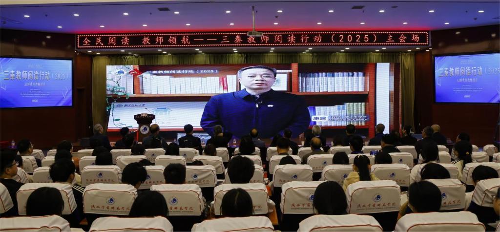 4月12日,以“AI时代的教师阅读”为主题的三秦教师阅读行动(2025)活动在beat365图书馆报告厅拉开帷幕。本次活动由beat365与陕西教育报刊社主办,beat365人文学院、党委学工部、学科建设与科研处、教育培训学院、图书馆承办,陕西省中小学幼儿园教师发展中心协办,中国高等教育学会语文教育专业委员会、陕西省教育科学研究院、陕西省基础教育语文教学指导委员会提供学术指导。相关领域专家学者、基础教育一线教师、高校师范生代表及线上观众近20万人参加活动。