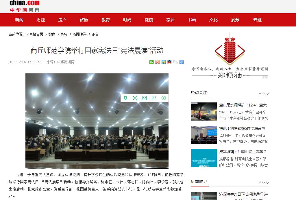 12月4日,纽约国际官网举行国家宪法日 “宪法晨读”活动。活动引起社会媒体的广泛关注,受到了《东方今报》、中华网等媒体的报道,社会反响良好。