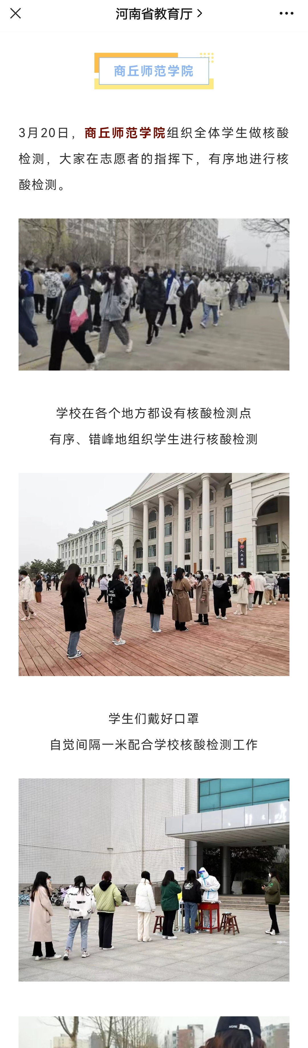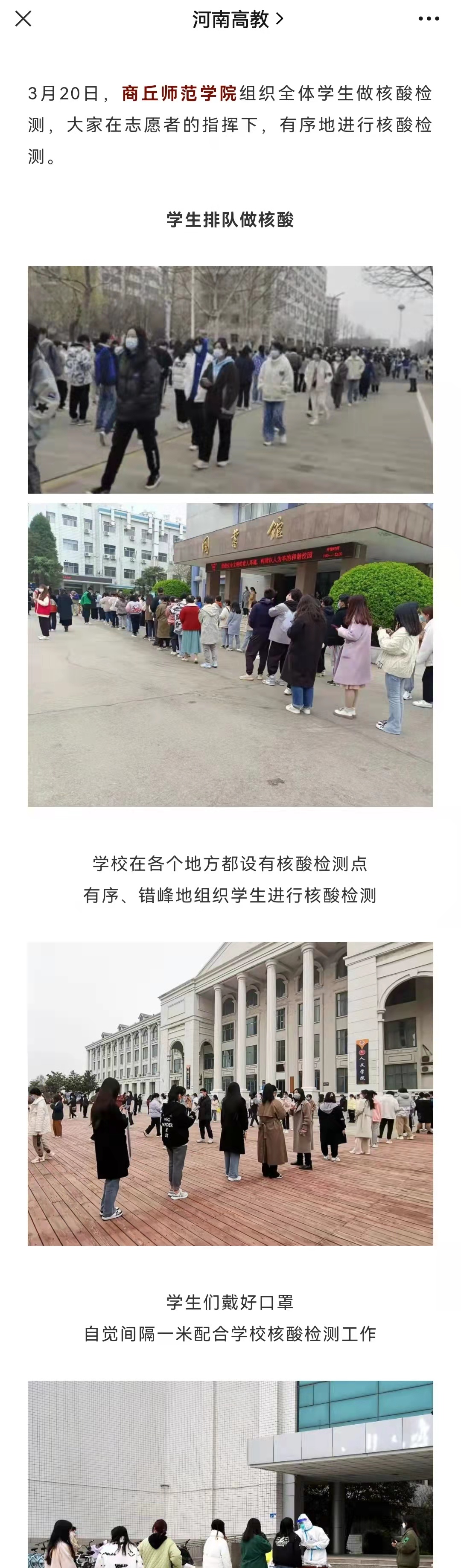 河南省教育厅官方微信:省内多所高校紧急实施封闭管理!直击校园核酸检测现场