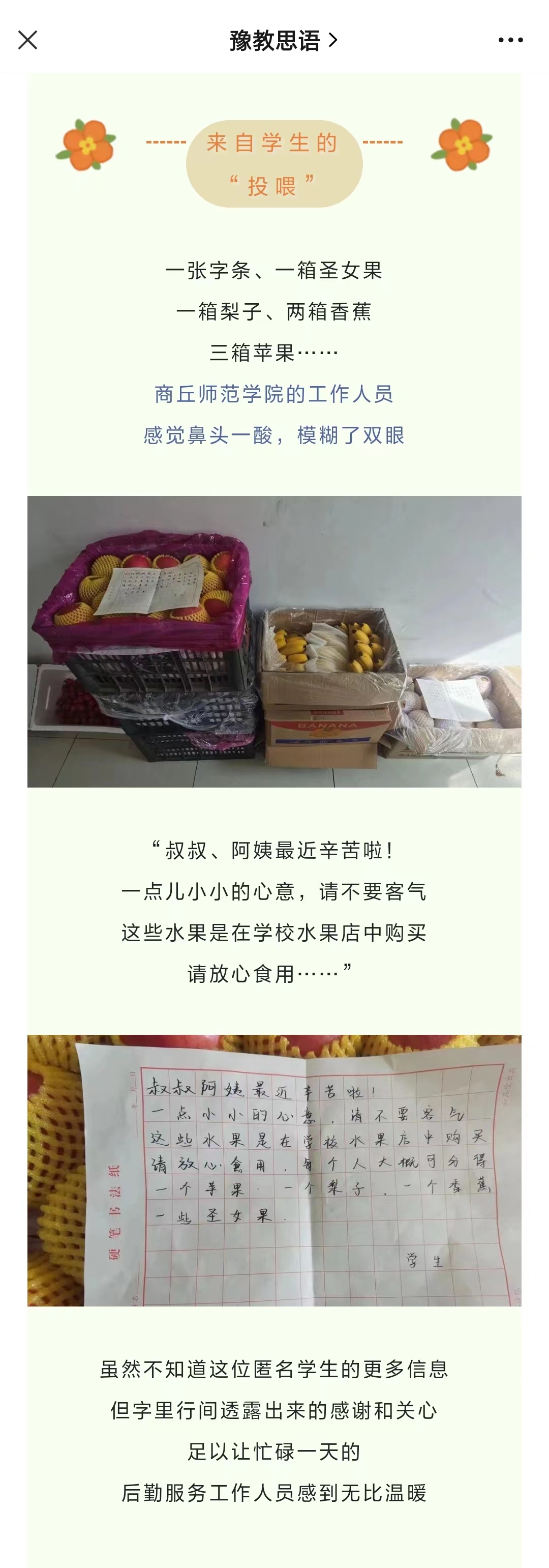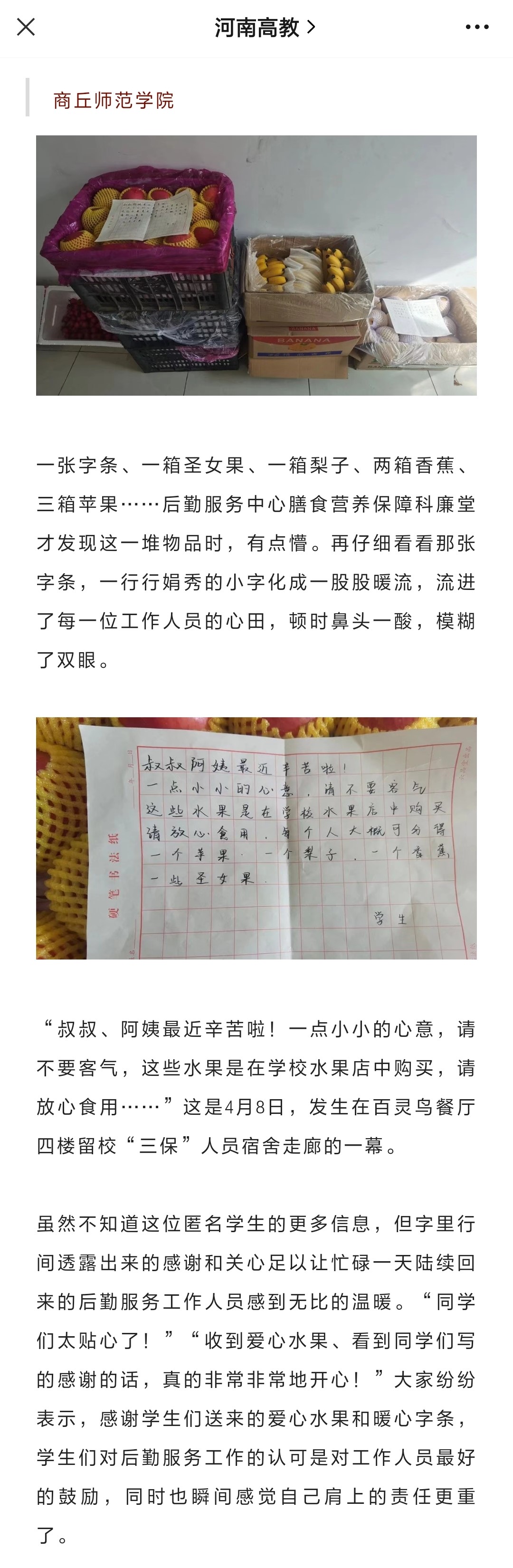 封闭管理下河南高校温度,是感动、更是力量