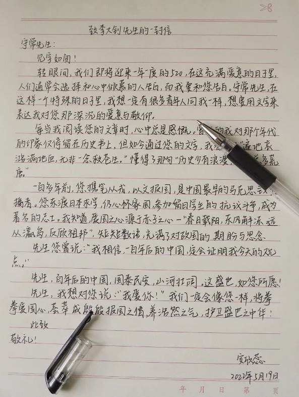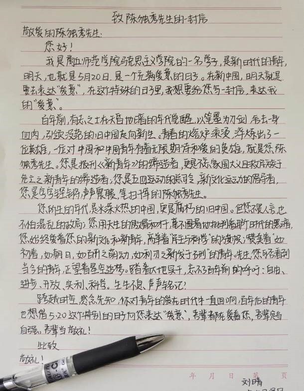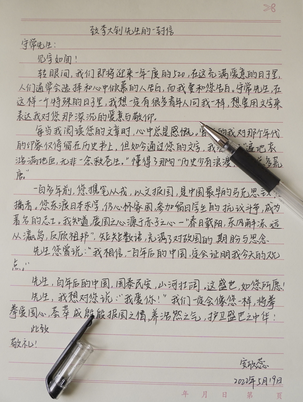 521,我爱你!封封红信,颗颗红心。纽约国际手机登录马克思主义学院学生以手书一封信的形式致信,响亮说出“我爱你”
