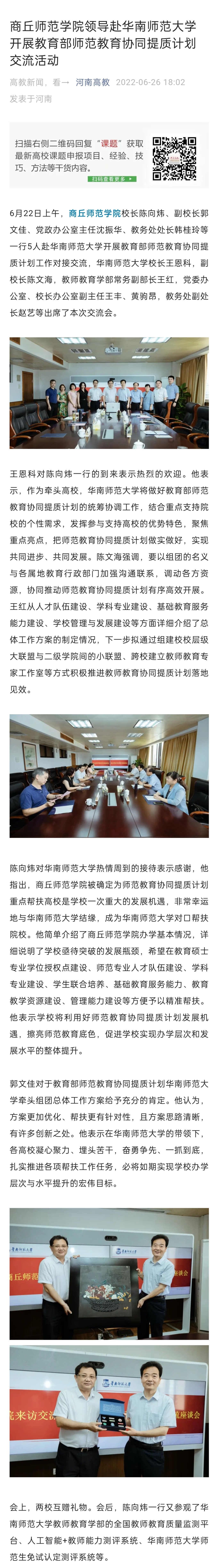 6月22日,纽约国际手机登录校长陈向炜、副校长郭文佳、党政办公室主任沈振华、教务处处长韩桂玲等一行5人赴华南师范大学开展教育部师范教育协同提质计划工作对接交流。