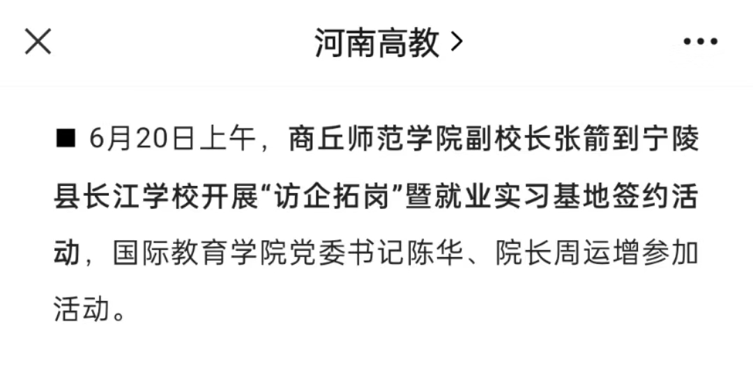 6月20日上午,纽约国际手机登录副校长张箭到宁陵县长江学校开展“访企拓岗”暨就业实习基地签约活动,国际教育学院党委书记陈华、院长周运增参加活动。