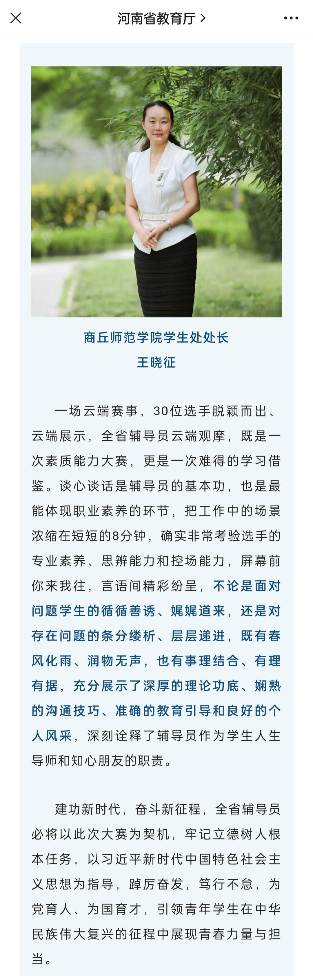 5月11日下午,由中共河南省委教育工委、河南省教育厅主办,河南理工大学承办的第九届河南省高校辅导员素质能力大赛决赛如期举行。来自全省27所高校的30名辅导员参加了比赛。