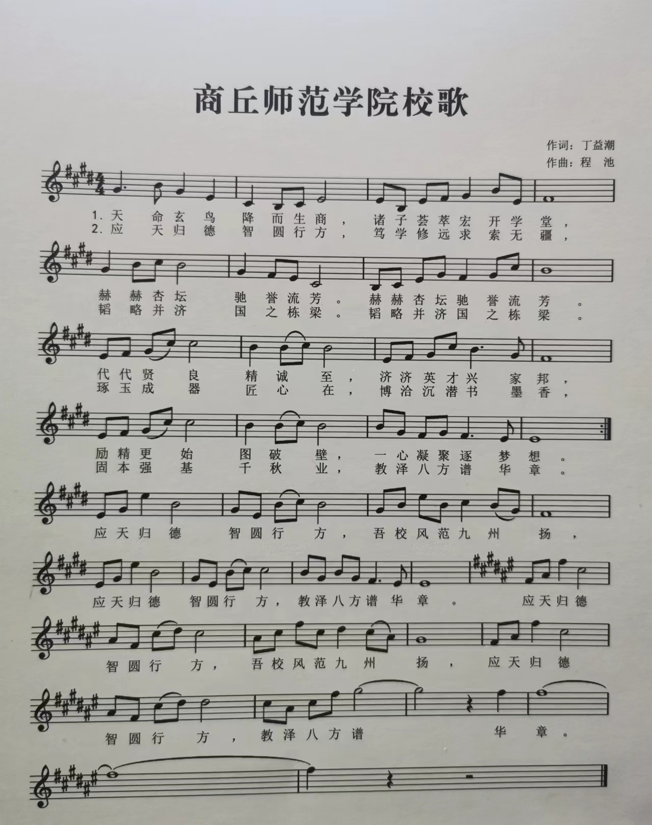 应天归德,智圆行方,吾校风范九州扬;